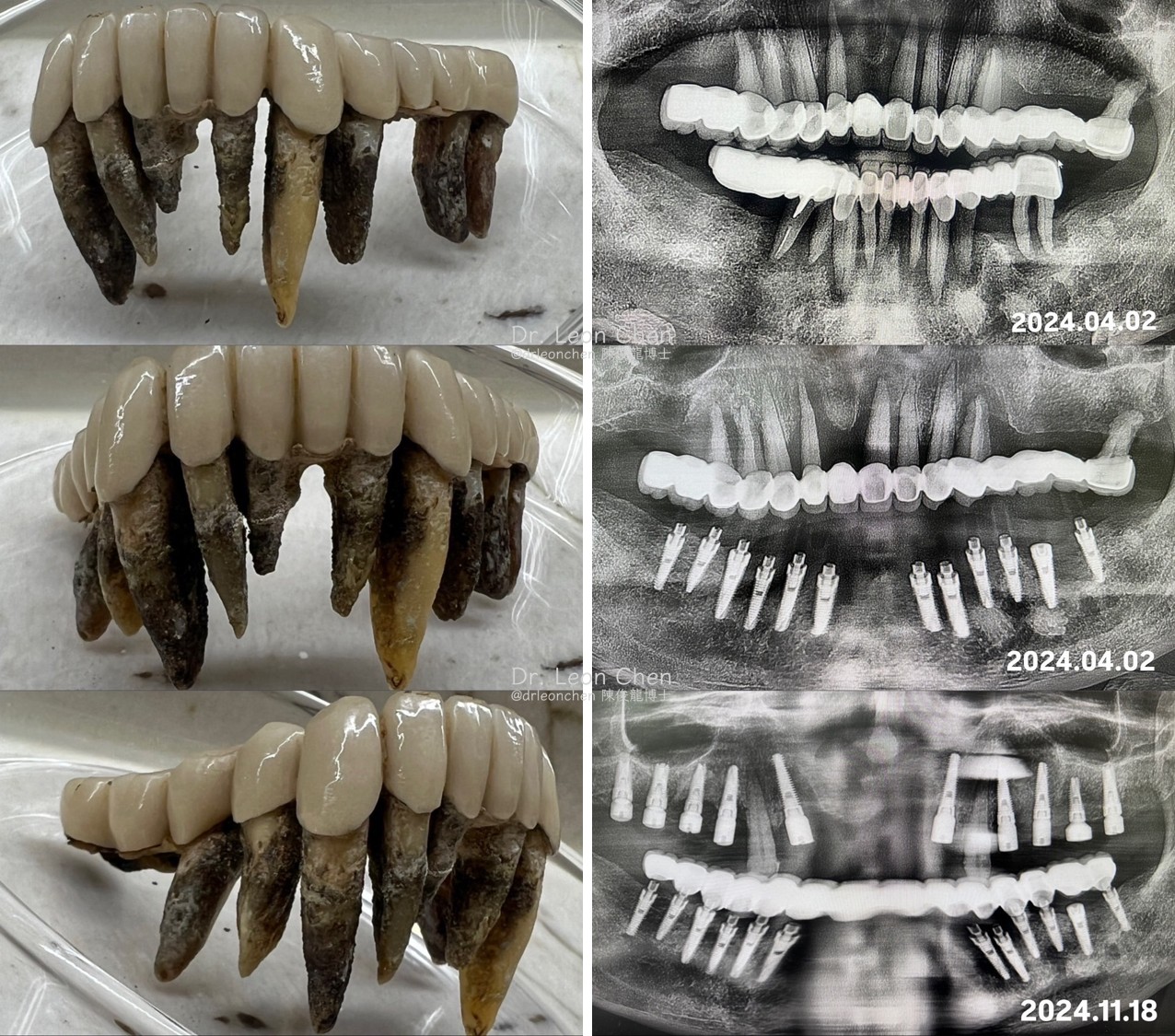 這位患者原本牙周炎非常嚴重,在陳博士的治療下,仍能做到即拔即植。