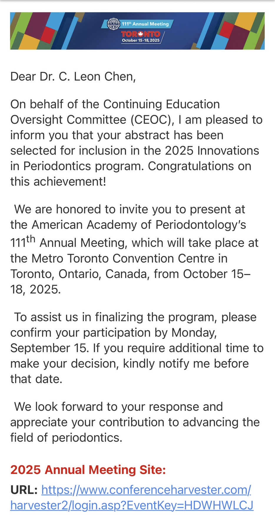 陳博士受邀參與第111屆美國牙周病學會(AAP)年度學術研討會,發表專題演講!