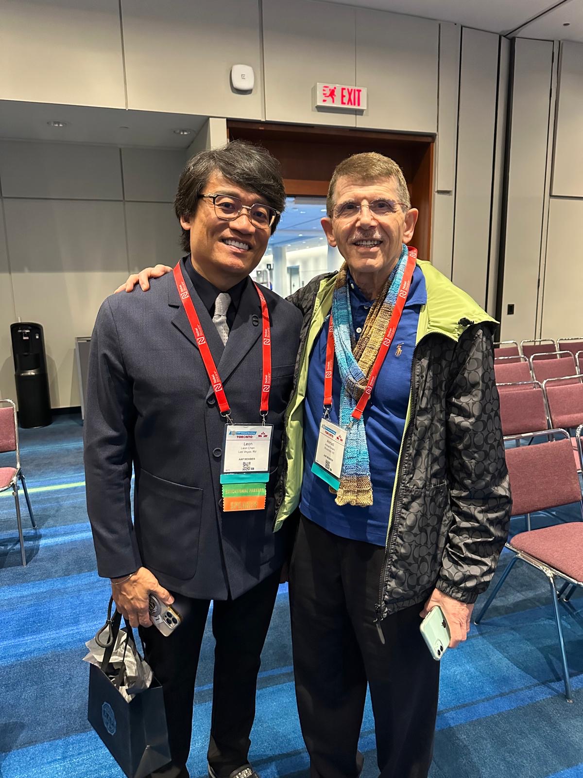 在會的講師休息室裡,陳博士正準備著演講稿,突然看到久違的老朋友 Dr. Pat Allen。