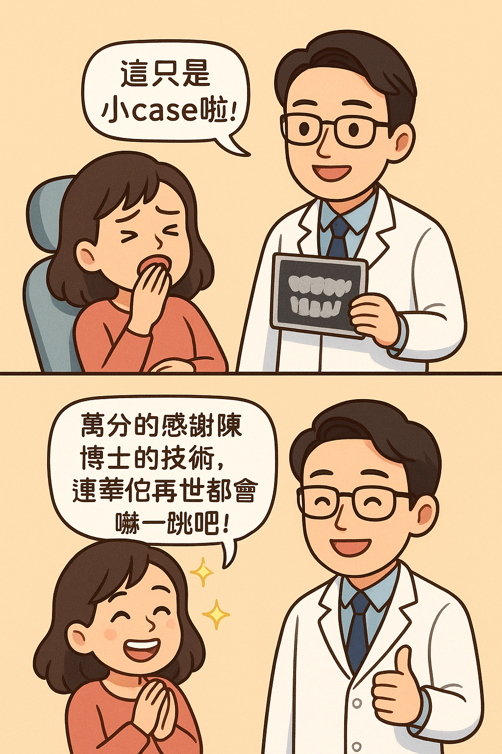 陳博士看了X光片後,第一句就笑著說:「這只是小case啦!」