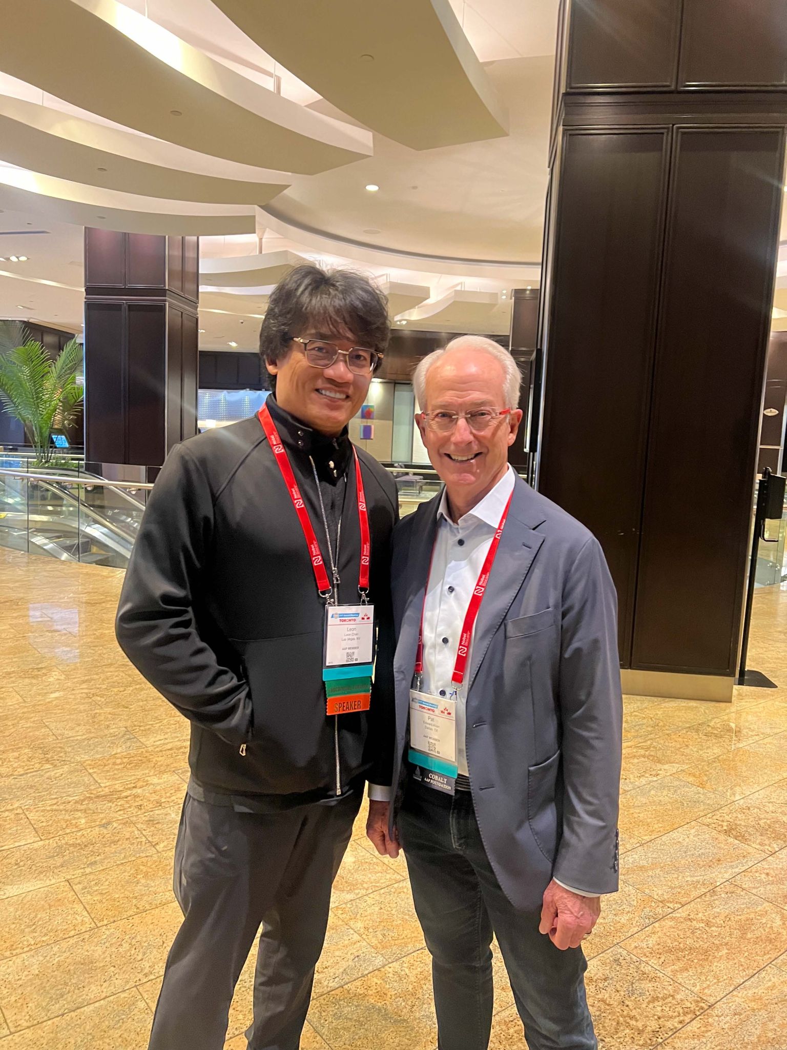 在會的講師休息室裡,陳博士正準備著演講稿,突然看到久違的老朋友 Dr. Pat Allen。