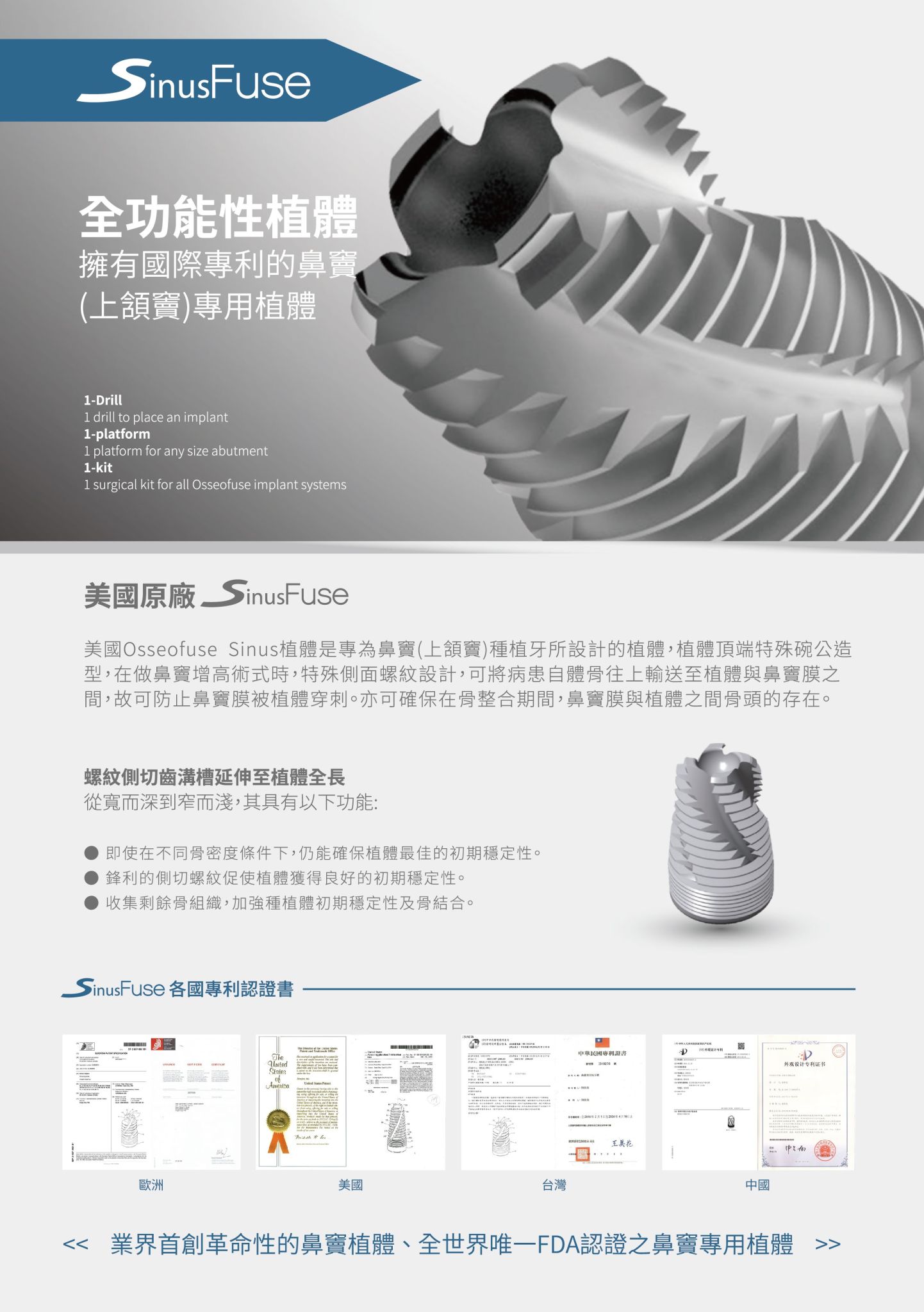 《業界首創革命性的鼻竇植體、全世界唯一FDA認證之鼻竇專用植體》